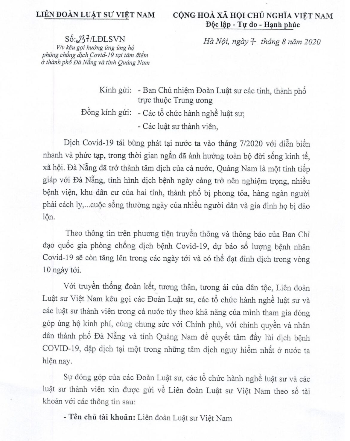 Tải xuống 0 Bình luận lsdaklak Bài trước Kết quả kiểm tra kỳ kiểm tra kết quả tập sự hành nghề Luật sư đợt 1 năm 2020 khu vực phía nam Bài tiếp theo Công văn số 73/VB-ĐLS ngày 12/08/2020 của Đoàn Luật sư tỉnh Đắk Lắk v/v hưởng ứng lời kêu gọi ủng hộ phòng chống dịch Covid-19 tại tâm điểm Tp Đà Nẵng và tỉnh Quảng Nam của Liên Đoàn luật sư Việt Nam You may also like Đoàn Luật sư tỉnh Đắk Lắk họp phiên... 14 Tháng chín, 2025 Kỷ niệm 80 năm ngày truyền thống lực... 18 Tháng tám, 2025 TS.LS Đỗ Ngọc Thịnh – Chủ tịch Liên... 22 Tháng tư, 2025 Lớp bồi dưỡng chuyên môn nghiệp vụ luật... 22 Tháng tư, 2025 Thông báo số 10/BCN-ĐLS V/v gửi các văn... 8 Tháng tư, 2025 Thông báo số 39/BCN-ĐLS V/v Đăng ký tham... 8 Tháng tư, 2025 Thông báo số 45/TB-HĐKT về việc điều chỉnh... 9 Tháng mười một, 2024 Thư kêu gọi đóng góp giúp đỡ đồng... 11 Tháng chín, 2024 Thông báo số 02/TB-HĐKT về việc lùi ngày... 5 Tháng chín, 2024 Đoàn Luật sư tỉnh Đắk Lắk tham dự... 30 Tháng tám, 2024